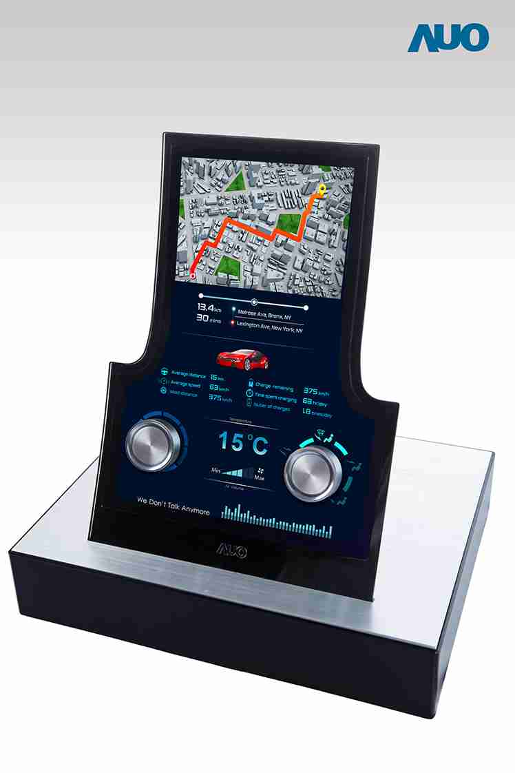 12.3 寸 Full HD LTPS 显示屏同样具备 1000 nits 高亮度,,,搭载内嵌式触控技术,,,整合驱动与触控 IC 于显示屏制程,,,,使显示屏厚度降低,,,为中控台创造更多机构设计空间。。应用于抬头显示器的 3寸 LTPS 显示屏具有高穿透率、、1200:1 高对比度度,,以及 297 PPI 高画素密度。。。。液晶最高可耐受到 110C 的高温 (TNI) 而不液化,,,,在阳光高温下维持优异稳定的显示效果。。。